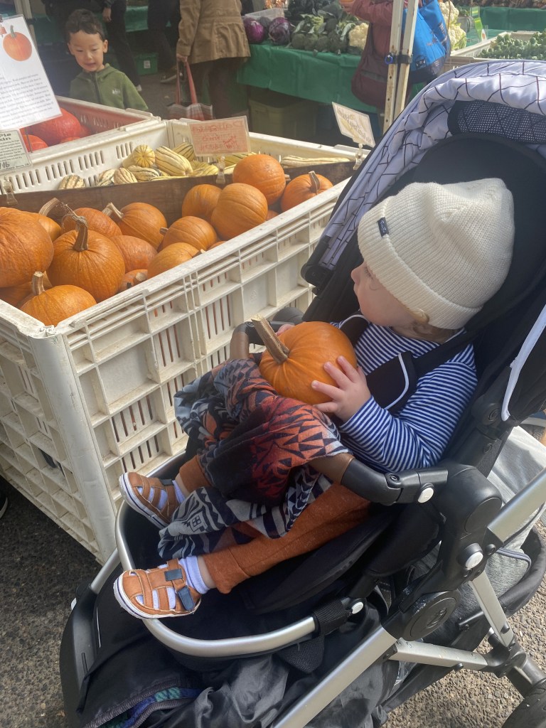 That’s the thing about new-ish parenthood. The pre-toddler emotional rollercoasters and the logistics and the nap schedules, all of that is stressful and hard by any standard. But the real crux of it all, the thing that wears on you the most and is capital S stressful is the nagging question Am I doing a good job? This is the kind of existential angst that really makes you a Tired parent. *Raising my hand. So, yes, post-menopausal ladies at the farmers market dolling out encouragement was not only appreciated but probably exactly the medicine I needed most. We might not have the archetypal village these days, but if we’re lucky and find ourselves at a good farmers market now and again, we can hopefully have village-y moments.